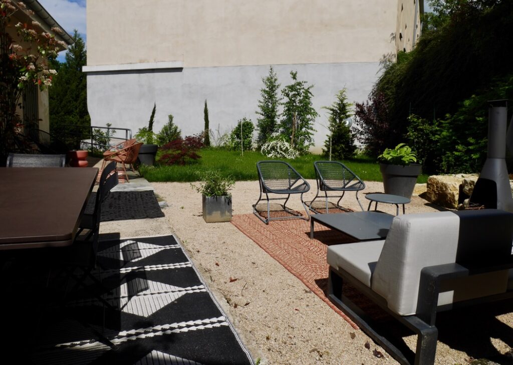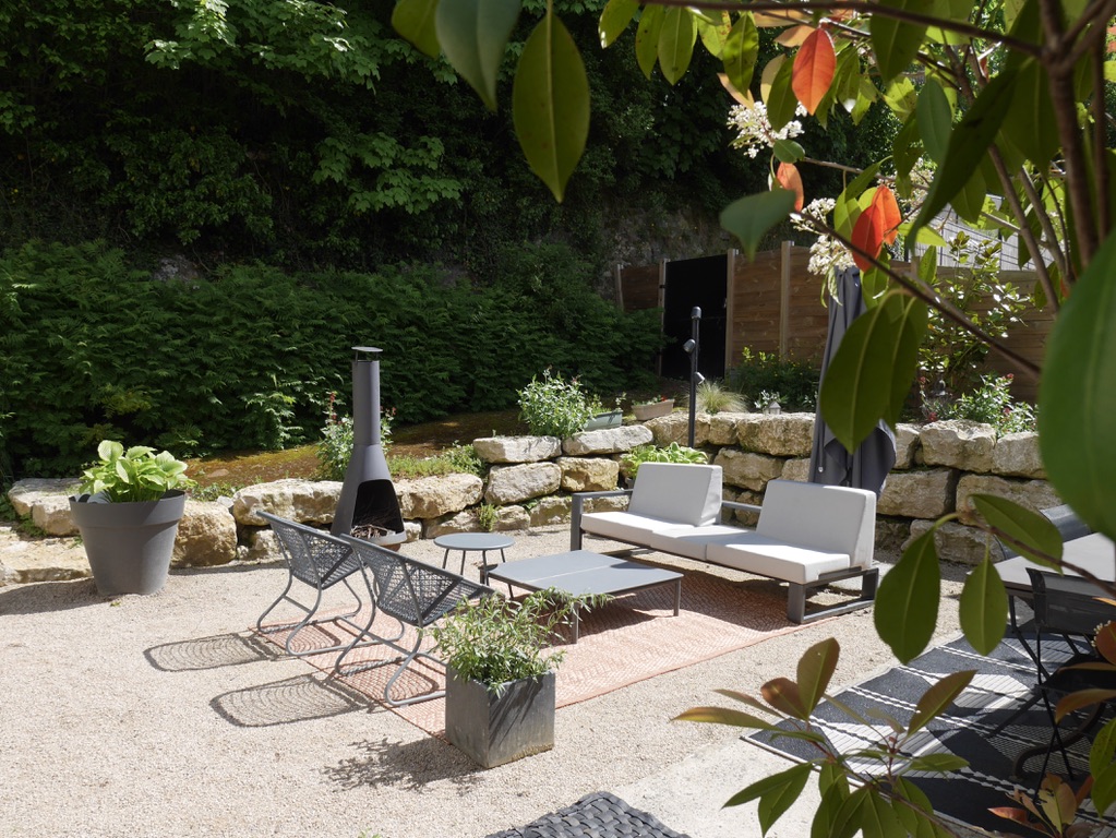 Avant de m’aventurer dans l’espace nuit, je m’attarde dans le jardin au verso de la maison. Chaque espace, chaque recoin est exploité pour nous inviter à paresser ou converser dans des ambiances joviales ou intimes.