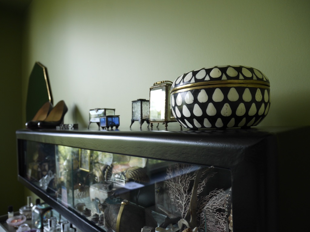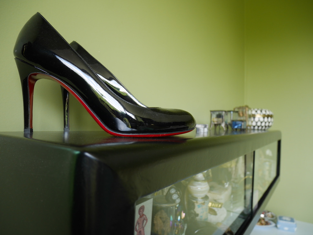 Et puis bien sûr, encore et toujours des objets conversant avec des meubles de métier en accord avec le passé des lieux. Dans une vitrine, sont exposées des petites merveilles et une paire d’escarpins Louboutin de Lilau exposés comme un trésor. Ce clin d’oeil me fait sourire instinctivement car j’aurais pu les présenter de la même manière !