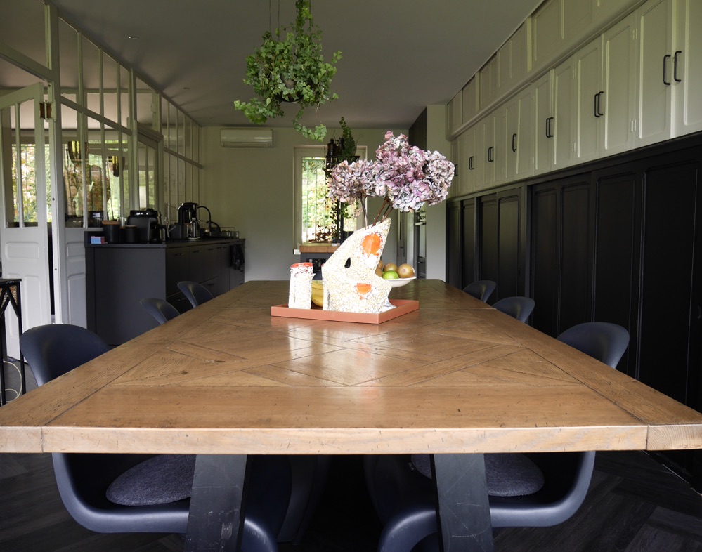 Première curiosité : le site. Qui d’autre qu’eux aurait pu imaginer un nid douillet dans une ancienne usine de fabrication de saucissons ? En même temps, est-ce que cela m’étonne de leur part? D’aucune manière. Ce site atypique ne pouvait que dévoiler un lieu de vie singulier à leur image… Encore fallait-il avoir le talent de scénographier les différentes pièces. Avec eux, une évidence.