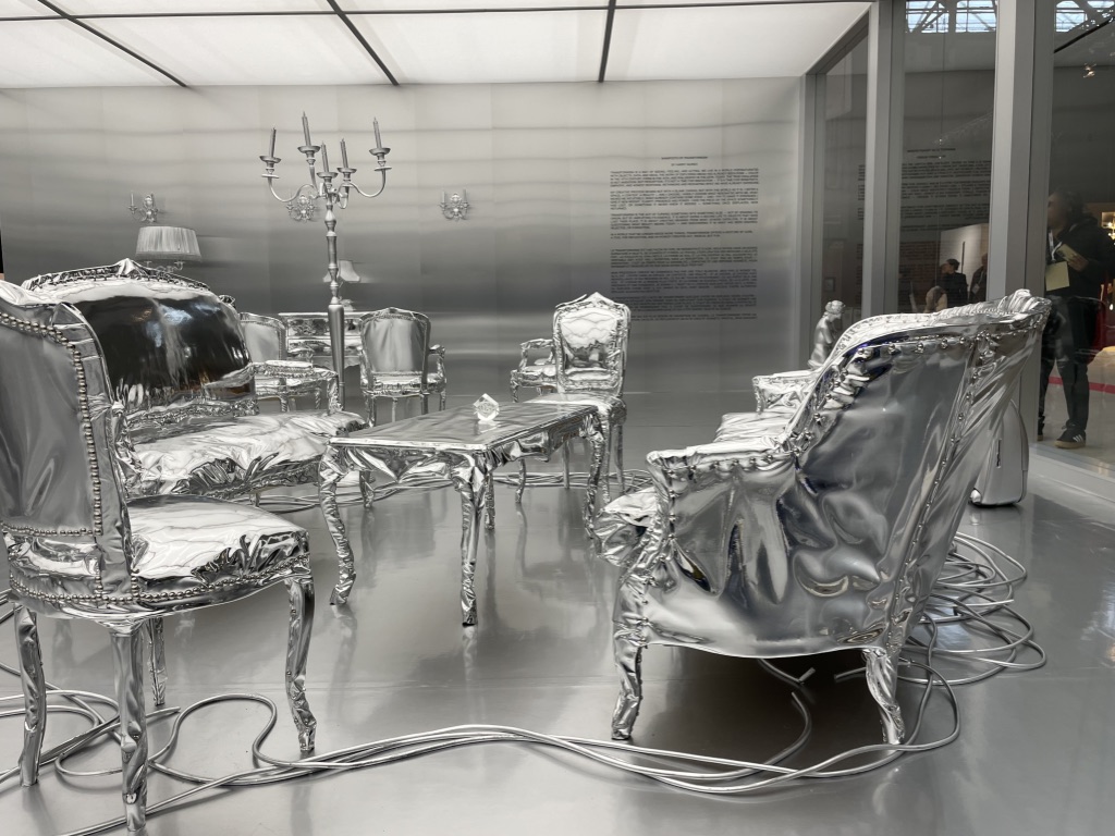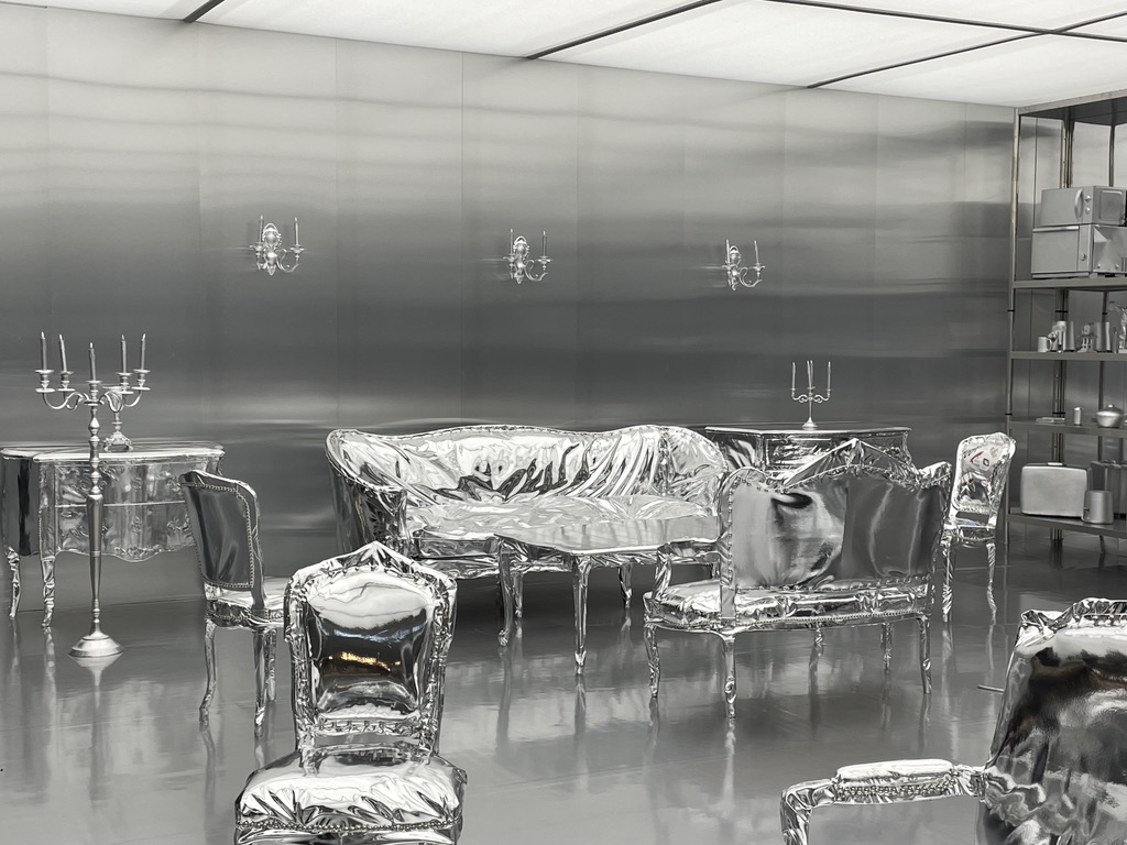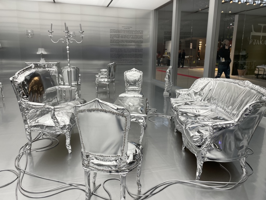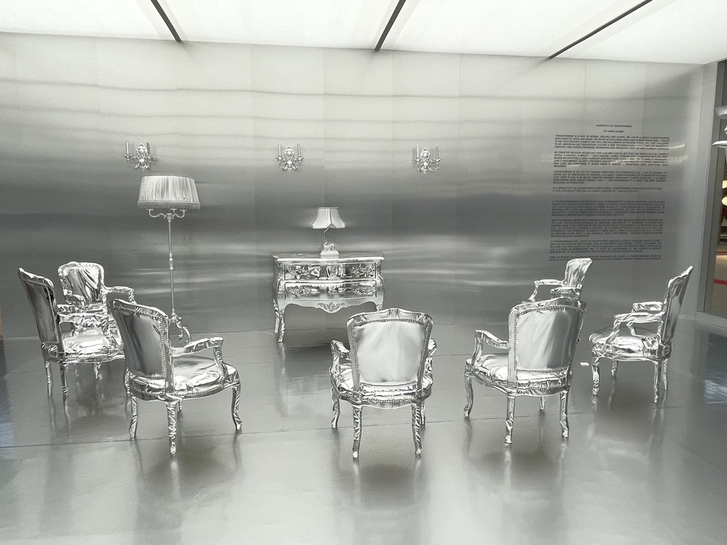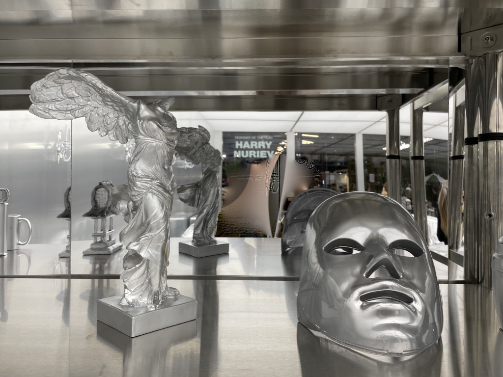 Nommé Designer de l’année 2026, le créateur Harry Nuriev s’est prêté au jeu de la thématique de cette édition du salon et a imaginé tout un espace à son image, porté par les valeurs du Transformisme, titre de son manifeste. Avec lui, l’objet usuel est devenu collector. Sa vision futuriste nous propose une scénographie puisée dans la culture française des Arts Décoratifs de ces derniers siècles dans laquelle tout le mobilier, les objets ont revêtu une parure argentée répondant à la philosophie de sa création et aux injonctions de notre époque. Il a souhaité les réinterpréter, les remodeler dans un nouvel environnement. Il propose de poser un nouveau regard.