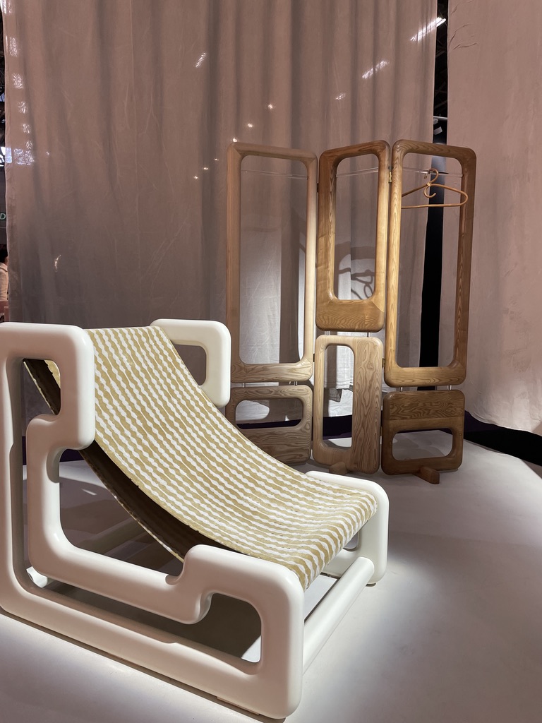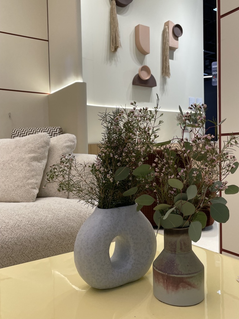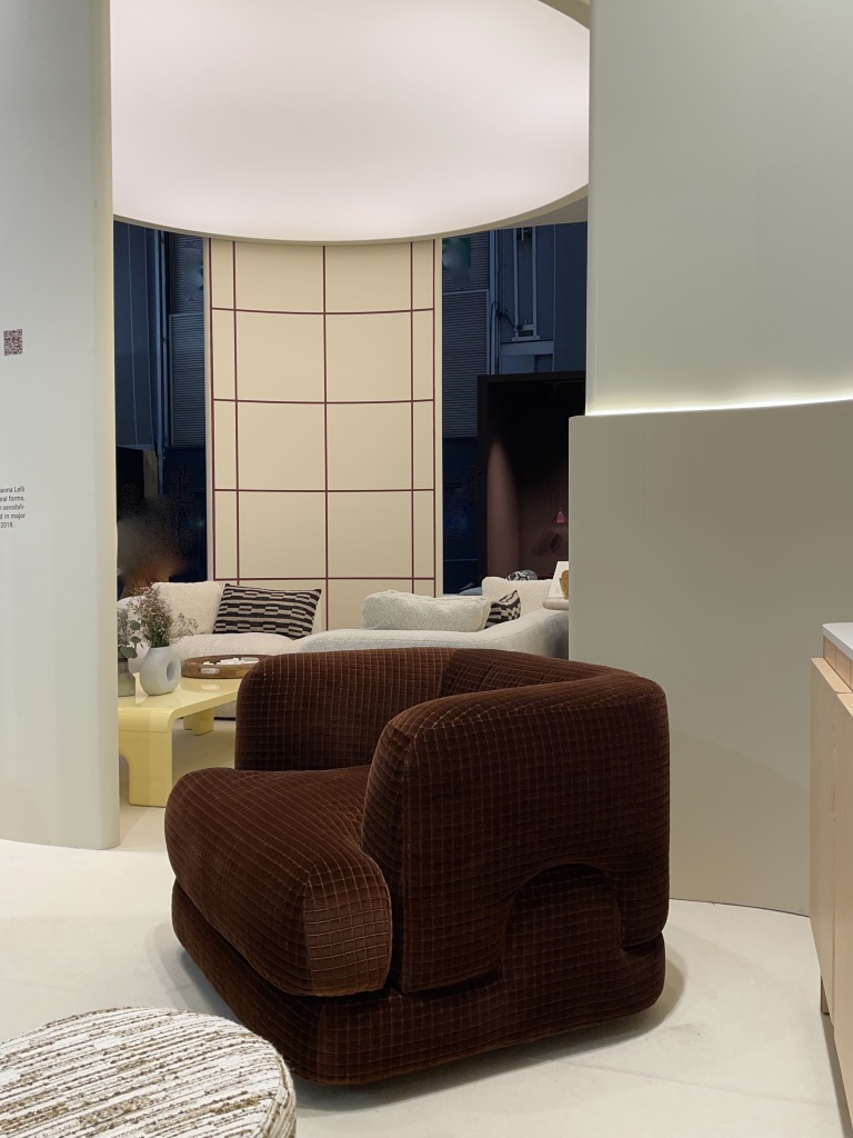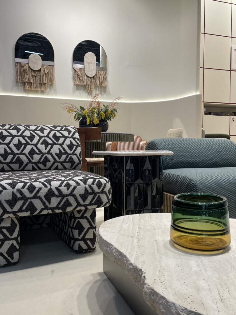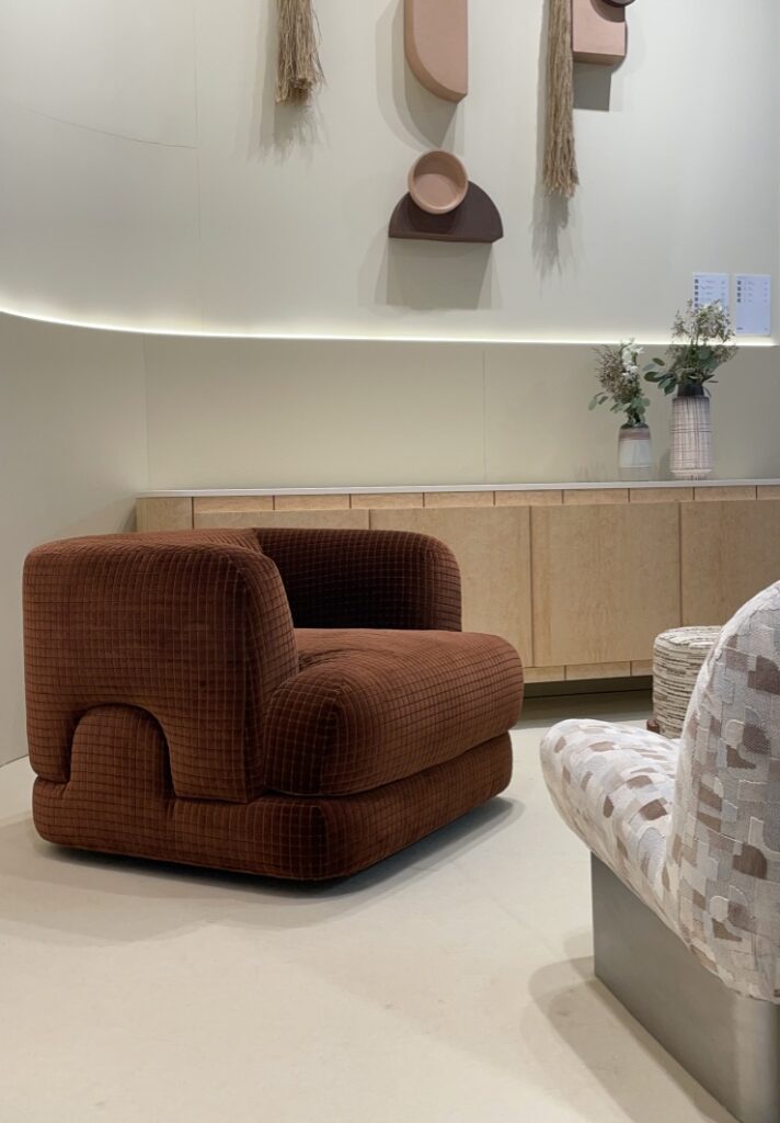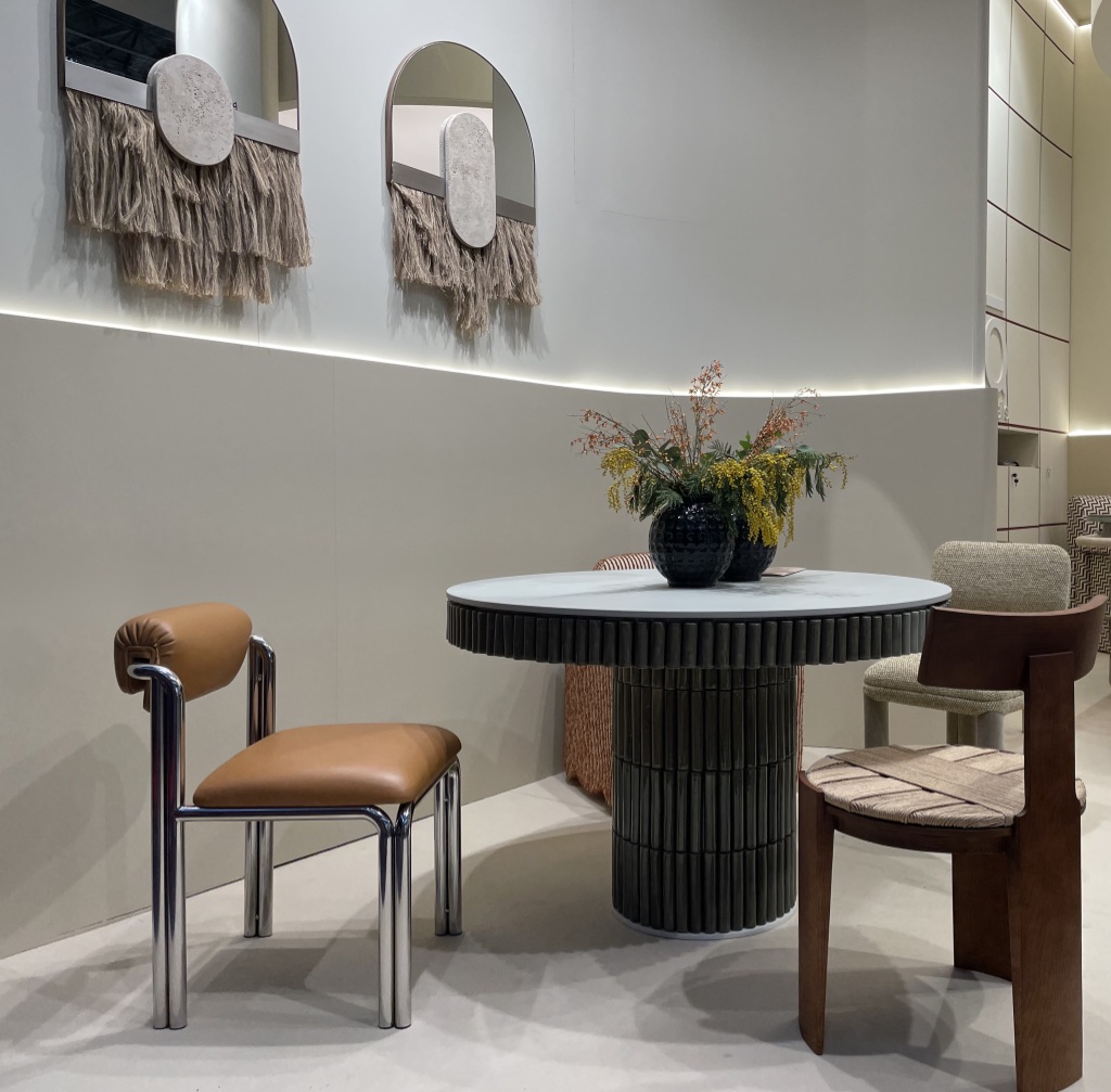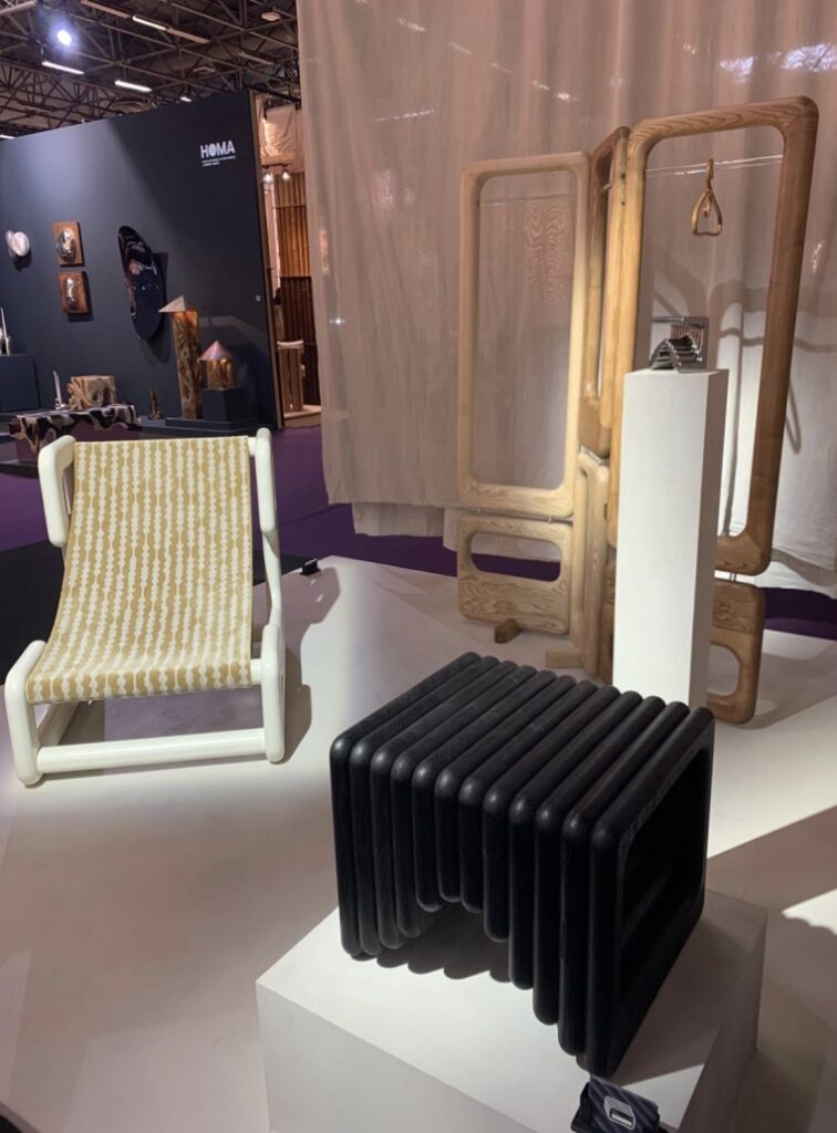 Quand on s’approche sur leur stand, on repère tout de suite une recherche approfondie des détails et la qualité des matériaux. Les lignes courbes intemporelles du mobilier se conjuguent aisément avec la sobriété et l’élégance des tonalités.