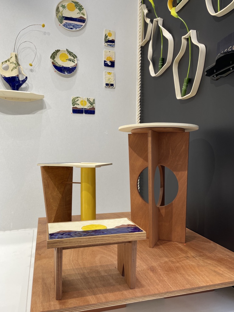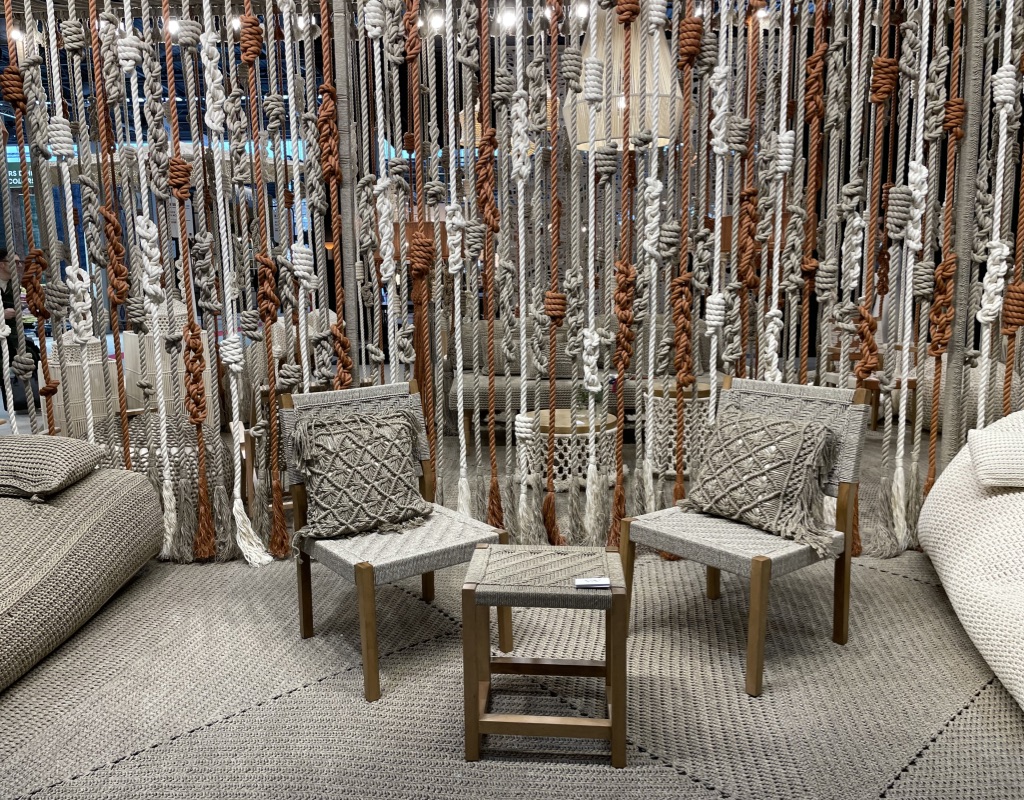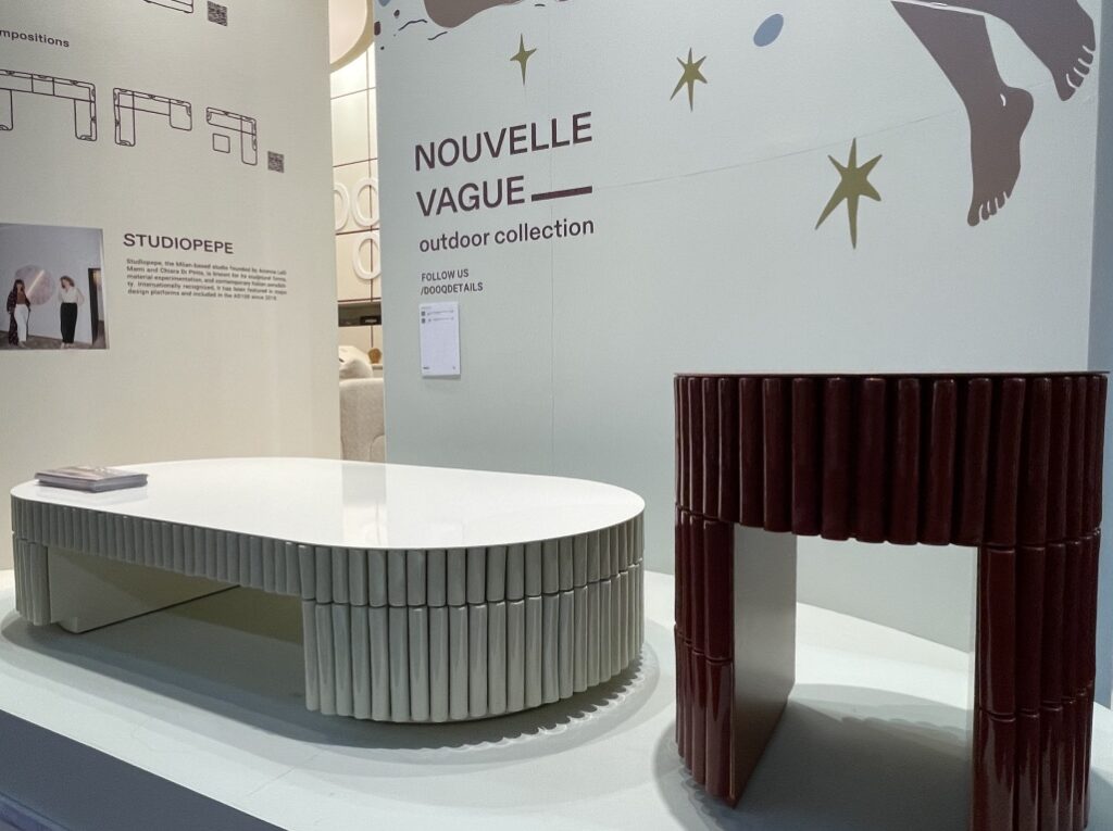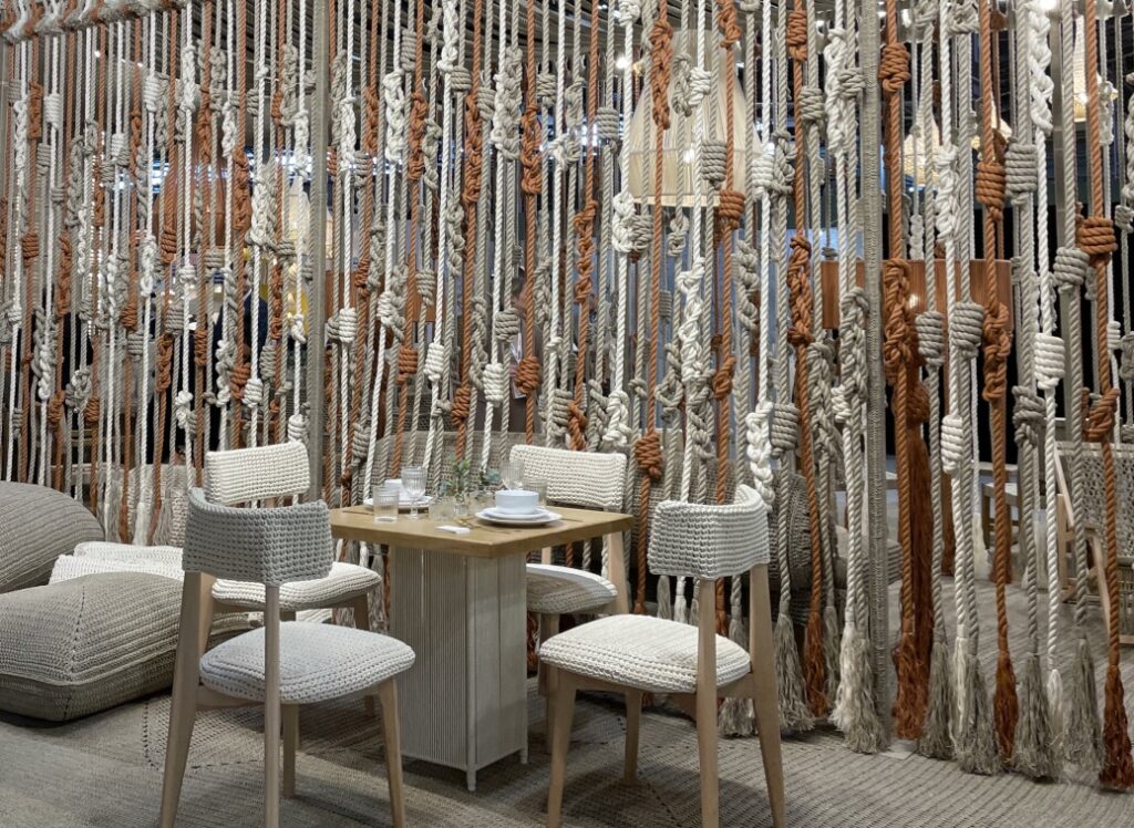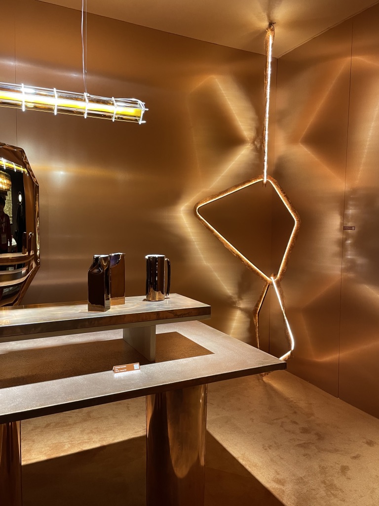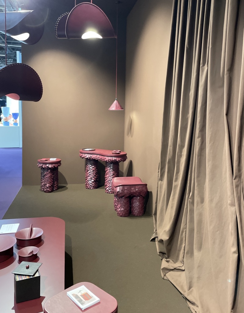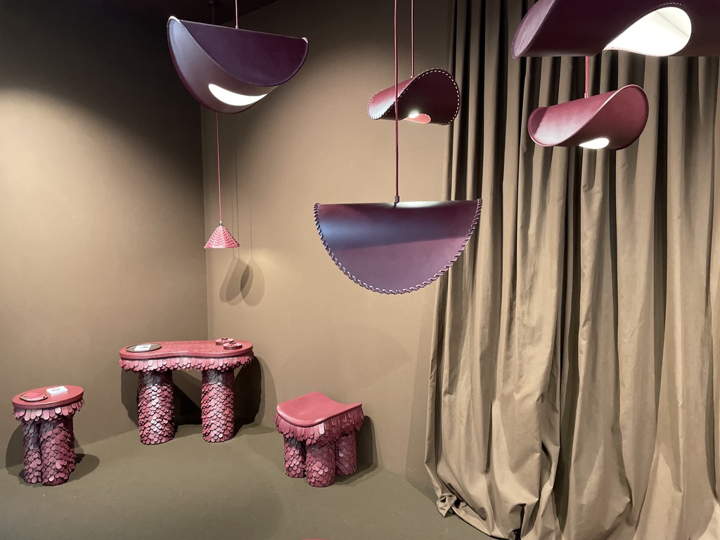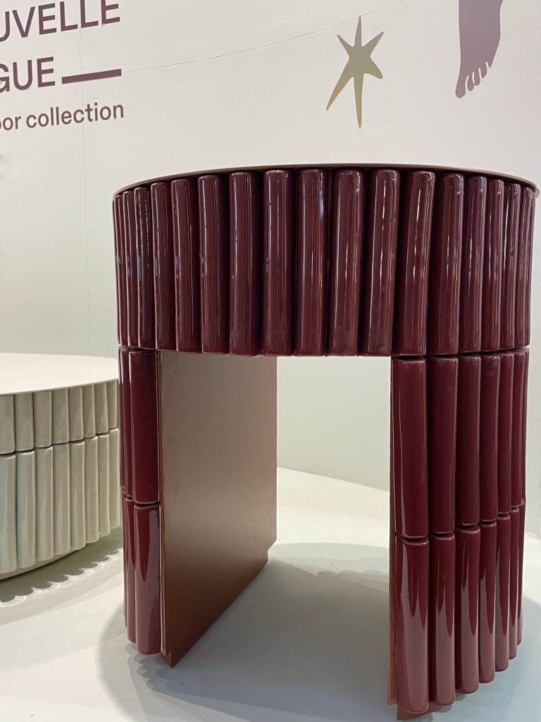 Quand on s’approche sur leur stand, on repère tout de suite une recherche approfondie des détails et la qualité des matériaux. Les lignes courbes intemporelles du mobilier se conjuguent aisément avec la sobriété et l’élégance des tonalités.