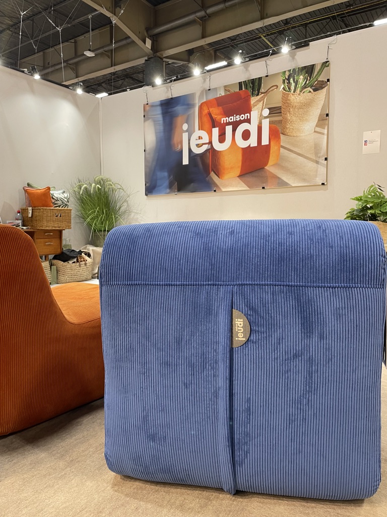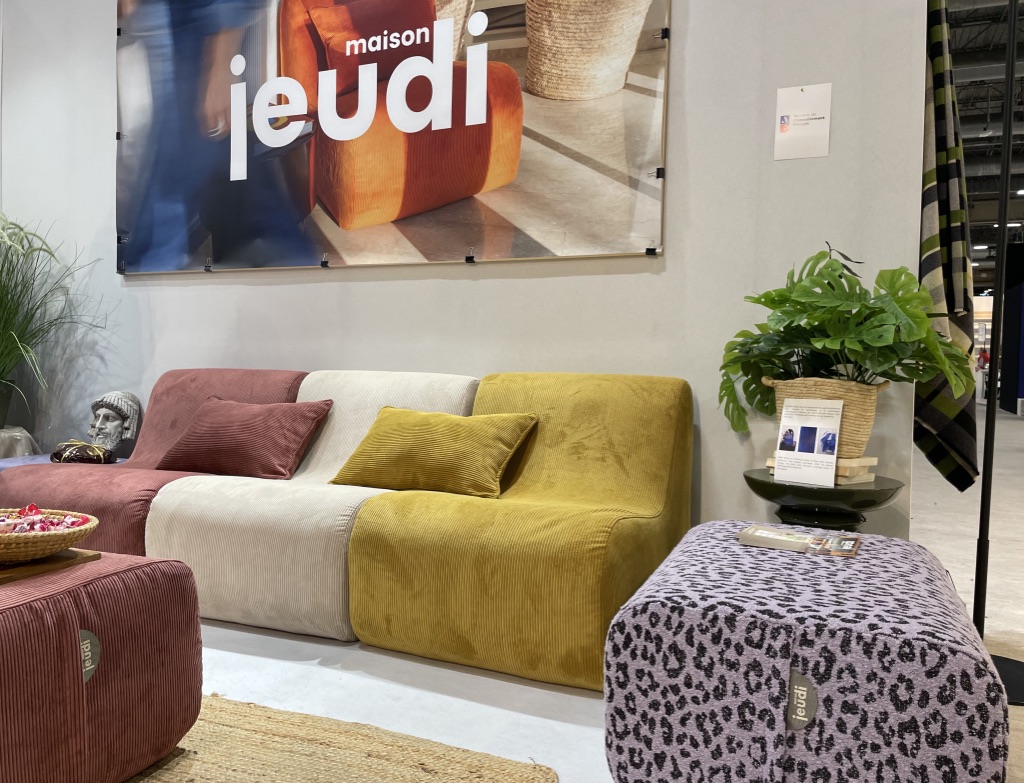 Je sais pertinemment que j’avais promis de me restreindre à seulement 10 coups de cœurs… Je m’octroie juste le plaisir de me garder un petit « Hors série » : Maison Jeudi. Je suis cette marque française de chauffeuses et poufs vintage depuis son début et c’est un vrai bonheur que de la voir grandir et évoluer ainsi. Cette année, de nouvelles couleurs sont apparues : le bordeaux clair, le zébré kaki et son côté voyage ou le « very bleu » tellement actuel. Magalie a même dévoilé une version luxe avec un pouf paré d’un tissu léopard parme audacieux mais so chic de la maison Kvadrat, qualité Tablu… On ne peut que craquer pour ces nouveautés et la gamme initiale pop ou pastel d’ailleurs. Bon vent à Maison Jeudi.