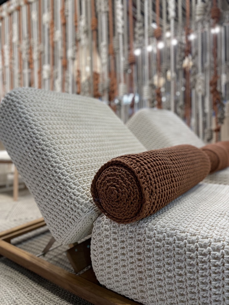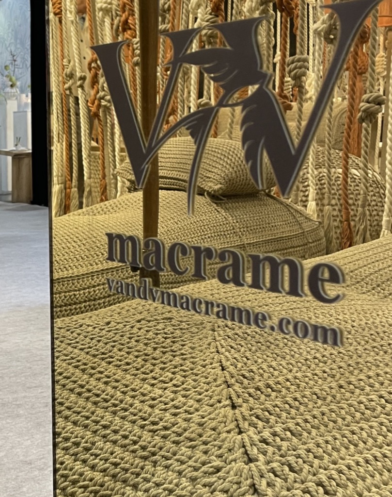 Oui, le macrame renvoie à des pratiques et des décorations désuètes de nos grand-mères. Oui, nous avons tous ou presque réalisé des caches-pots plus ou moins esthétiques au collège en cours d’E.M.T.(détail que les moins de vingt ans ne peuvent pas connaître…). Mais V and V Macrame a su s’en emparer de manière actuelle et élégante. Il faut se rappeler qu’avant d’être une icônes des intérieurs des années 70, le macramé est un art ancestral , celui de nouer des cordons ou des fils dans des motifs géométriques et ce, depuis le Moyen Age.