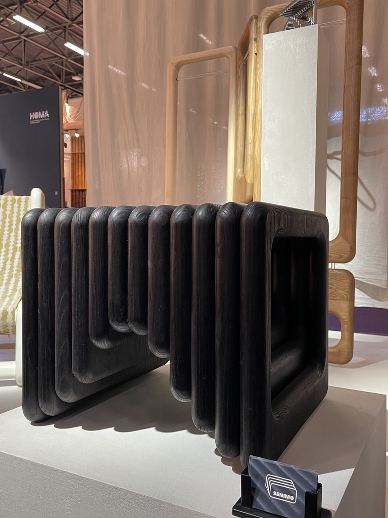 Les pièces en frêne de l’atelier Senimo furent mon premier coup de foudre sur le salon. Elles font partie de la sélection du designer, architecte d’intérieur et directeur artistique Thomas Haarmann, la capsule CURATIO qui pose son regard sur un autre design, un design exclusif et sensible. Cette capsule CURATIO est un véritable hors-temps au cœur du secteur Signature, en partenariat avec AD France.