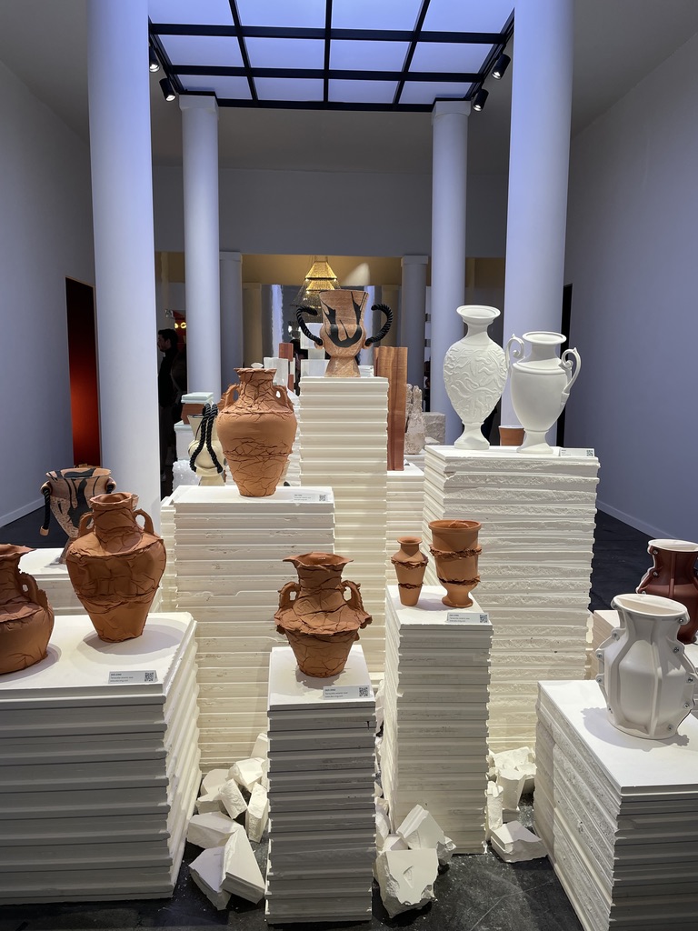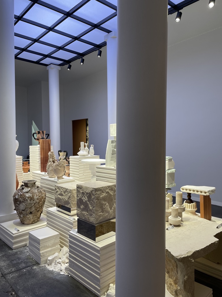 Elizabeth Leriche, véritable chasseuse de tendances, a puisé une nouvelle fois dans la richesse du salon pour nous proposer une scénographie immersive en s’inspirant de l’architecture néo-classique. Elle s’est prêtée au jeu de la thématique et s’est interrogée sur les archétypes des époques, s’en est inspirée pour puiser les racines et pour mieux en réinterpréter l’imaginaire. Dès l’entrée, un grand fronton et une colonnade invitent le visiteur à rentrer dans une travée centrale mettant en scène des collections de céramiques et d’objets singuliers comme une nouvelle forme d’archéologie contemporaine. Le péristyle dévoile dans sa déambulation différentes capsules.