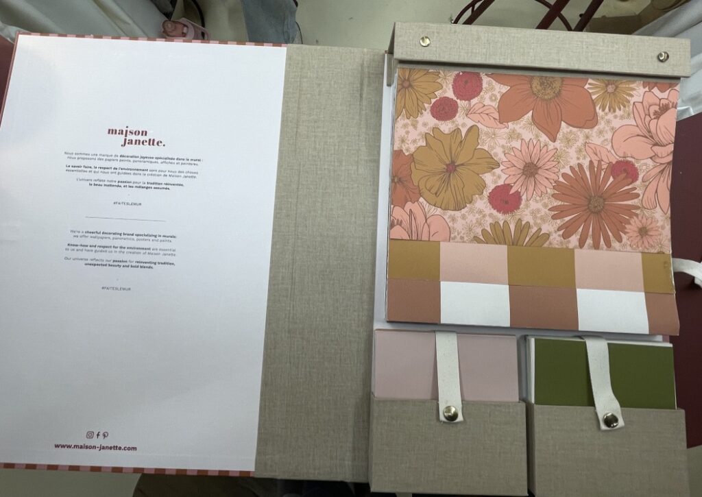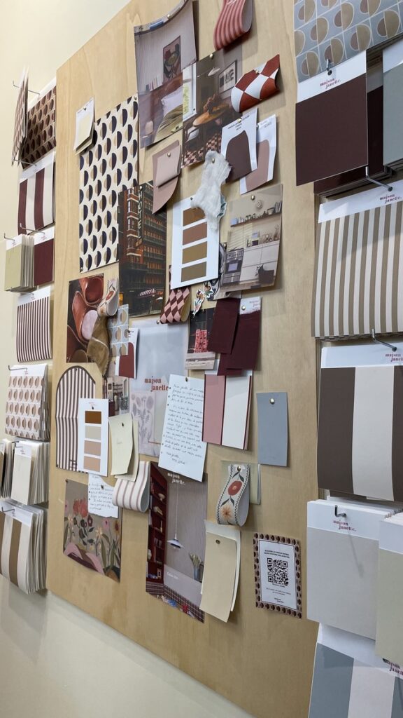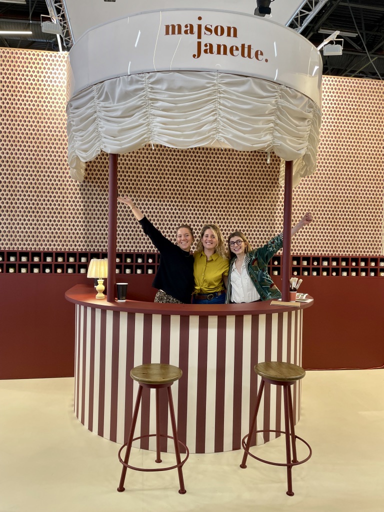 On peut dire que Maison Jannette a transformé l’essai sur le salon en imaginant un stand digne d’un décor de théâtre! Cette marque française imagine des papiers peints, des peintures, des panoramiques, des têtes de lit et des frises. Mais leur marque ne se résume pas à ça. Loin s’en faut. Déjà Maison Janette, c’est le choix d’une production locale et responsable et la garantie d’un véritable savoir faire. Les gammes de motifs sont dessinées à la main puis imprimées de manière traditionnelle. Mais c’est aussi et surtout une valeur ajoutée séduisante : celle d’offrir des déclinaisons chromatiques qui assurent des gammes harmonieuses entre les papiers peints, les peintures et les ambiances rêvées. Tout se mélangent avec saveur, tout s’associe avec délicatesse : un pur bonheur pour les yeux. Grâce à Maison Jannette, les intérieurs ont une âme, racontent une histoire et les couleurs et le sourire de l’équipe mettent de la joie dans nos quotidiens et en ce moment, je crois que ce n’est pas superflu….