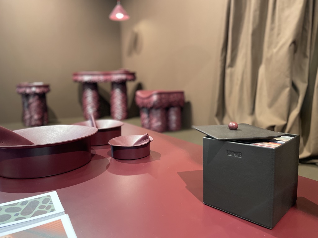 Uniqka, marque de design qui revigore les anciennes traditions artisanales avec un design contemporain, s’est bien fait remarquer sur le salon en arborant fièrement la couleur très actuelle et comble de l’élégance, le « burgundy ». En collaboration avec des designers du monde entier, Uniqka présente une série de produits, simples mais percutants et et inspirants déclinant les saveurs de ce rouge profond. Le design minimaliste et le savoir-faire exquis de chaque pièce transmet le raffinement. A la fois simples et singuliers, conjuguant le bois et le cuir à la manière d’écailles de dragons, les créations attirent l’œil et convoquent tous les sens…