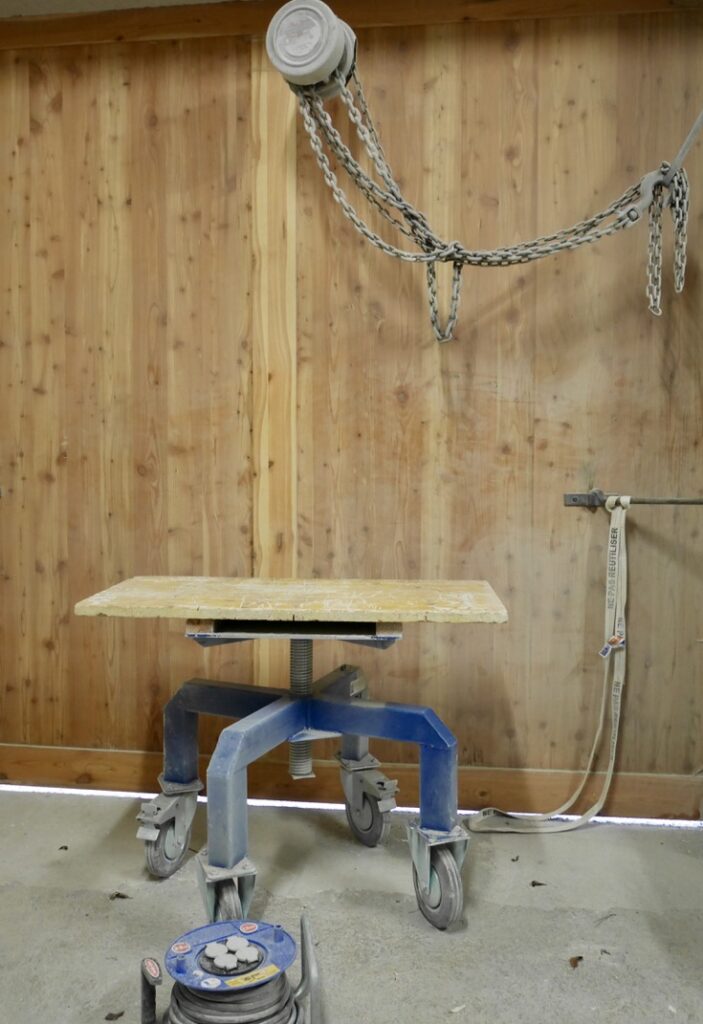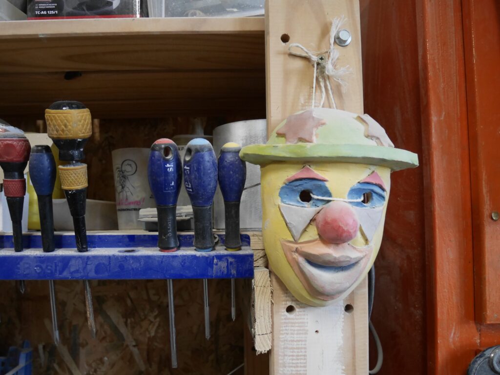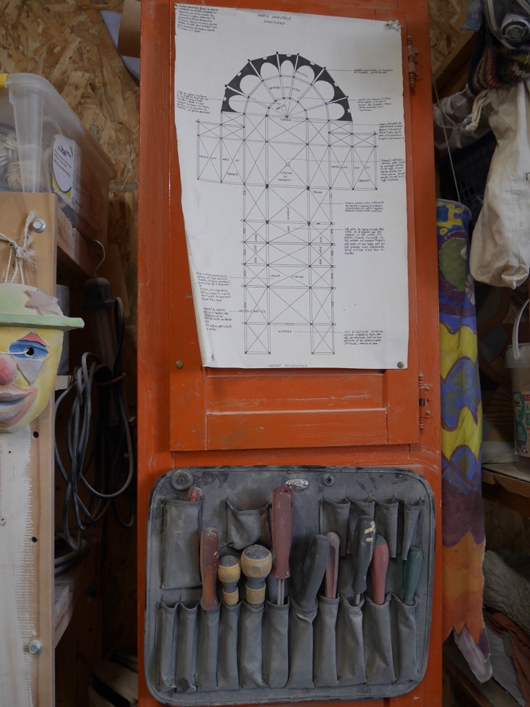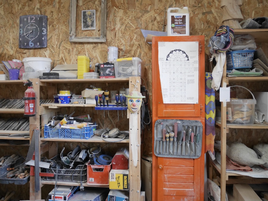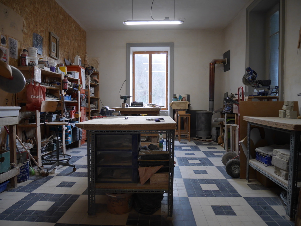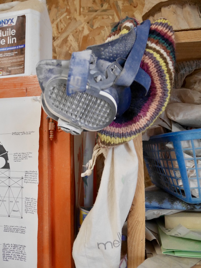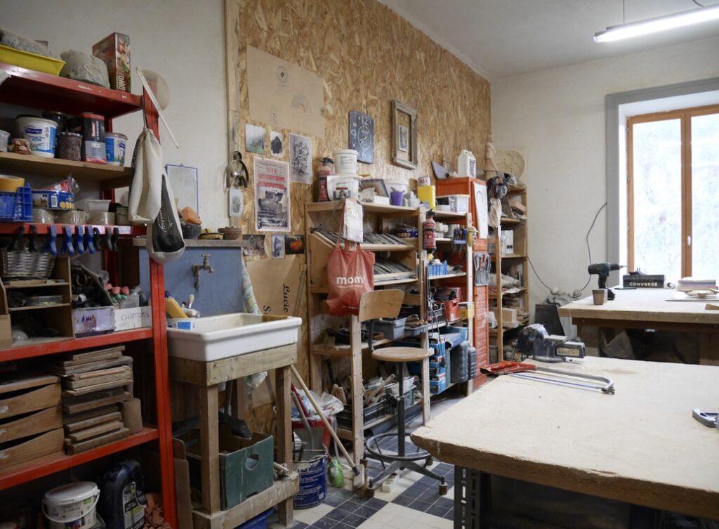 Lucie me reçoit chez elle, dans la maison familiale du pont de l’Estaing qui lui sert également d’atelier. Après une visite de son espace de travail plutôt dévolu à l’étape des finitions et d’exposition, elle me conduit dans un autre bâtiment, dans les coulisses de son art.