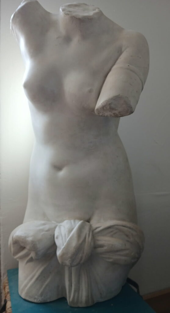 Voila un moulage en plâtre d’un buste antique ; cette sculpture m’accompagne depuis de nombreuses années, c’est ma grand mère paternelle qui me l’avait offerte; elle avait fait l’école du Louvre et nous évoquions souvent ensemble les différentes courants artistiques; elle était passionnée et elle est sans doute pour quelque chose dans mon goût pour l’art et la sculpture.