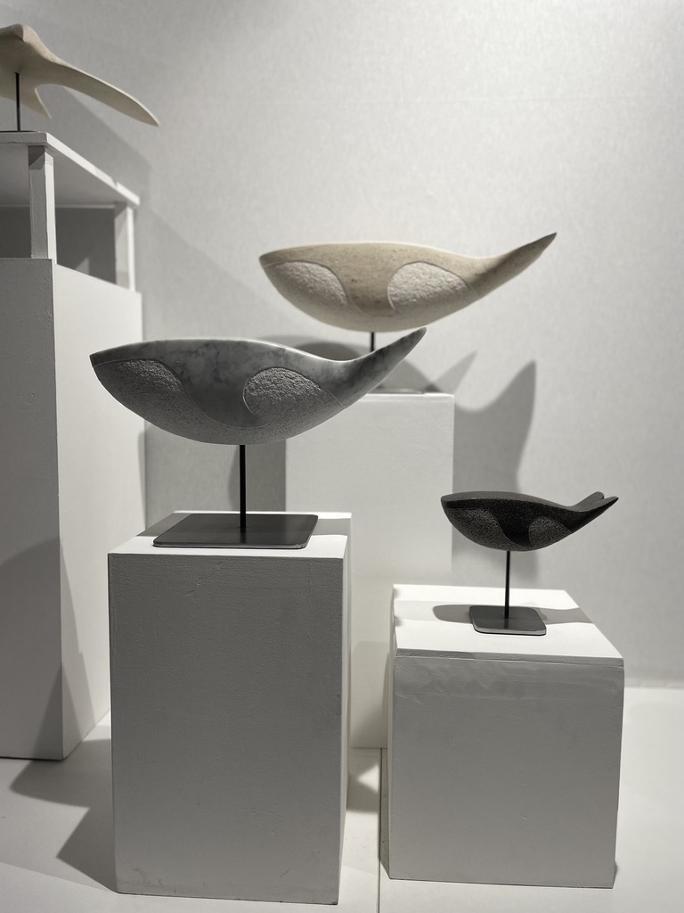 La sculpture sur pierre, art millénaire, continue de fasciner par sa capacité à transformer la matière brute en œuvres d’une beauté saisissante. Aujourd’hui, elle reste un medium privilégié pour de nombreux artistes contemporains qui explorent de nouvelles formes d’expression, tout en s’inscrivant dans une riche tradition artistique. Que cherchez-vous à exprimer avant tout dans vos créations ? Ce que j’aime dans la pierre, c’est sa capacité à se transformer. Partir d’un simple caillou brut pour le sculpter en une œuvre douce est un processus fascinant. J’apprécie particulièrement cette transformation essentielle, où chaque détail superflu est écarté. Comme les artistes préhistoriques, qui en quelques lignes représentaient des animaux , je cherche à travailler sur la ligne, à n’utiliser que quelques traits pour exprimer et représenter la nature.